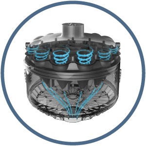 ไฮโดรไซโคลน 18 ตัว พร้อมเทคโนโลยี SpinTech สร้างแรงดูดเป็นเกลียวหมุนวนและรักษากำลังดูดสูงสุดจนกว่างานจะเสร็จ
