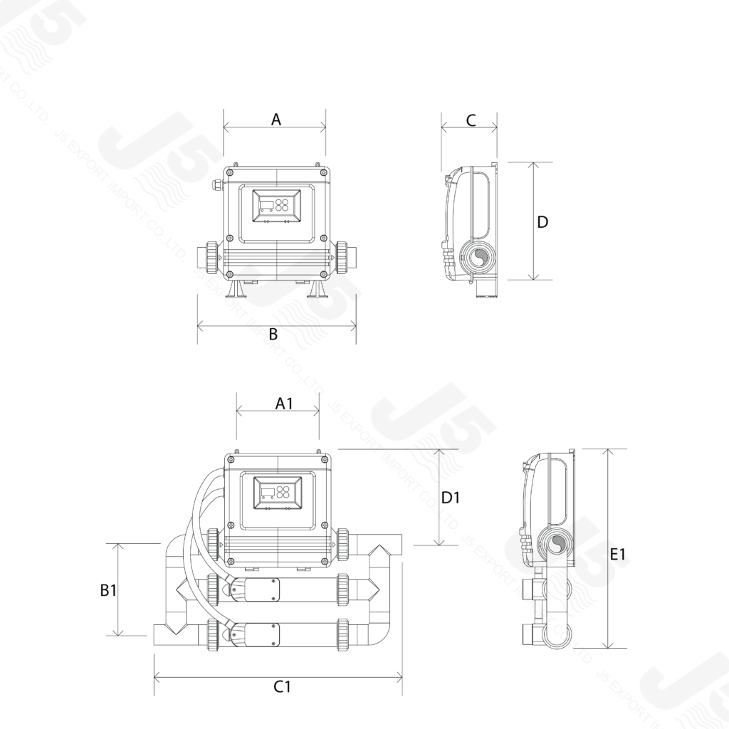 ขนาดของอุปกรณ์ทำความร้อน WATERCO DigiHeat