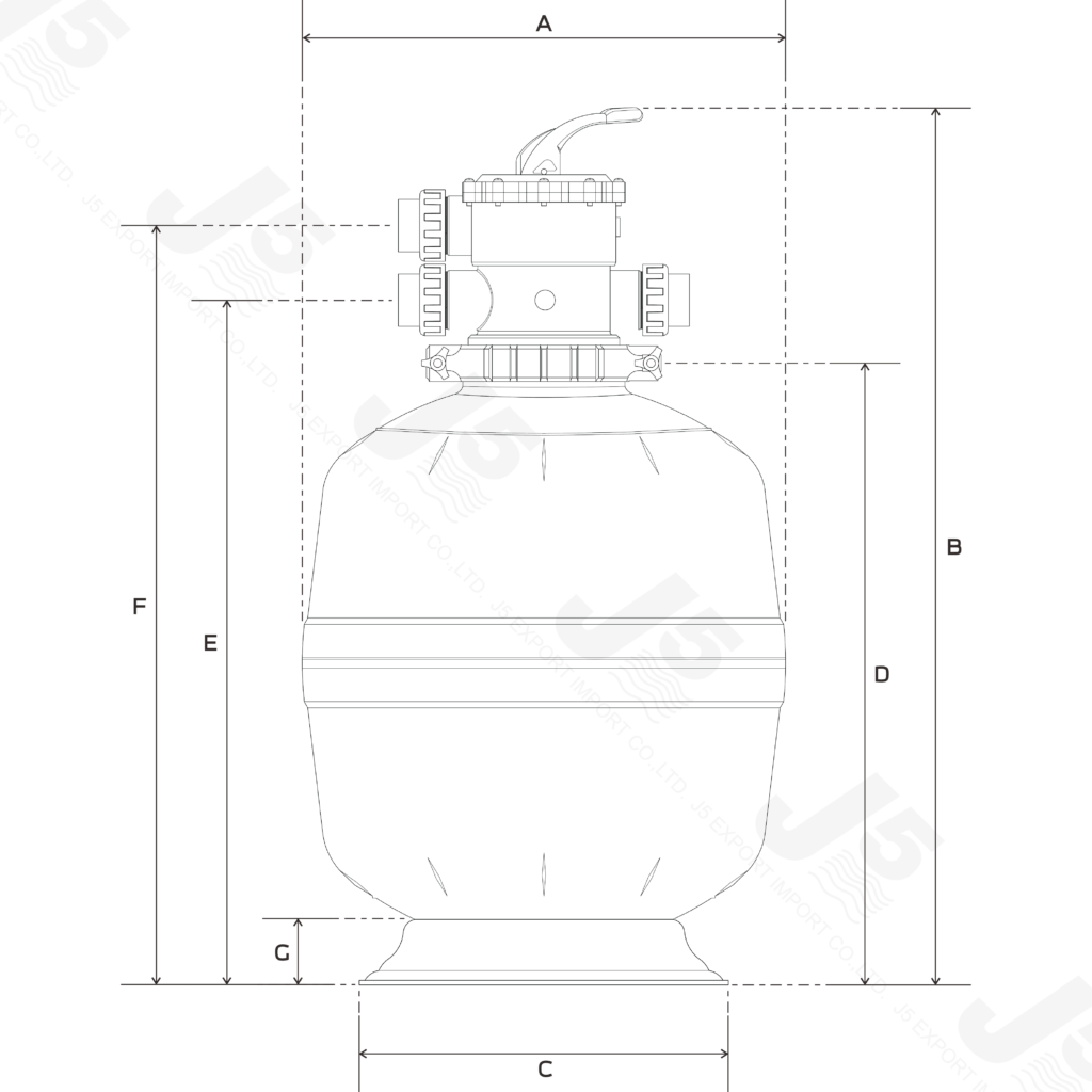 | FT-WI-22602990 | 27” Exotuf Plus E702 Sand Filter | 2” | 755 | 1226 | 620 | 902 | 980 | 1080 | 90 |
