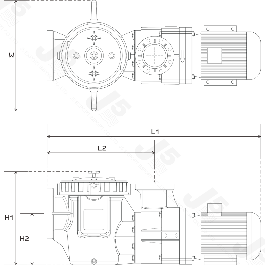 – มอเตอร์ IE3 ประสิทธิภาพสูง IP55 พร้อมเพลามอเตอร์สแตนเลสเกรด 431 และพัดลมระบายความร้อนภายในมอเตอร์