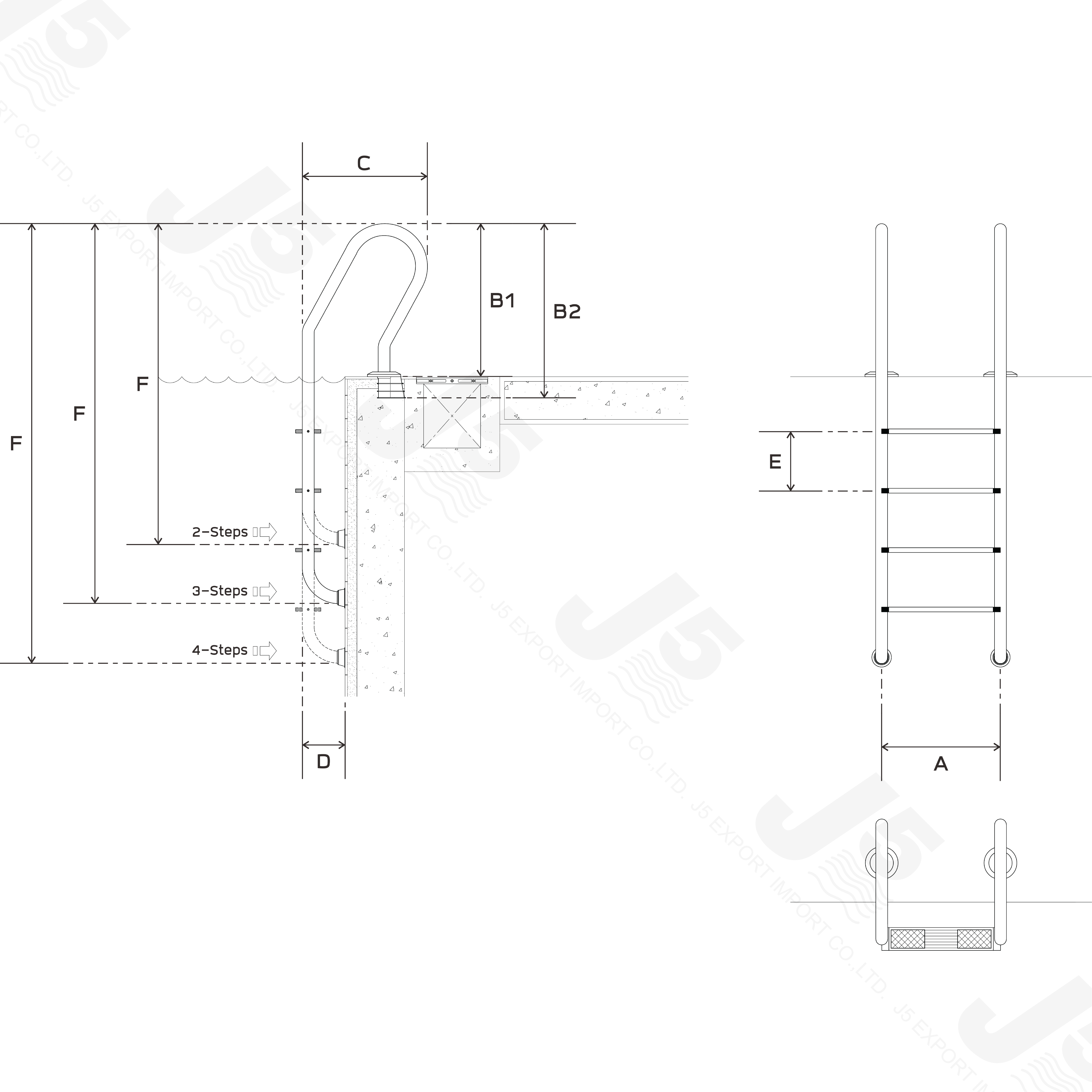 – ขั้นบันไดสแตนเลสเสริมยางป้องกันการลื่น มีทั้งขนาด 2, 3 และ 4 ขั้น