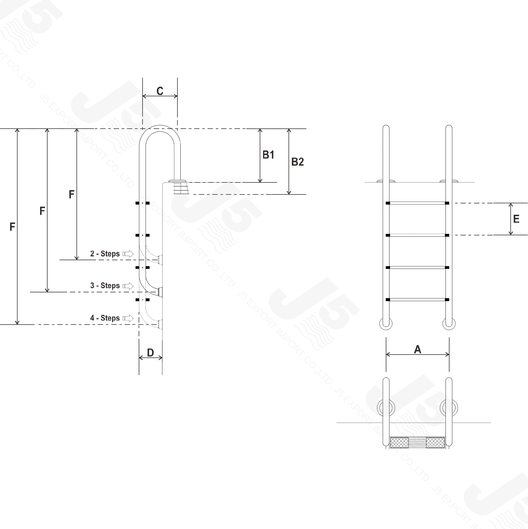 บันไดสระว่ายน้ำจากแบรนด์ JESTA ติดตั้งร่วมกับสระว่ายน้ำโดยเฉพาะด้วยรูปลักษณ์และการออกแบบที่เป็นมาตรฐานและสวยงาม พร้อมทั้งมีความแข็งแรง ทนทาน ด้วยวัสดุ สแตนเลส 316 ที่มาพร้อมกับขั้นบันไดที่เสริมด้วยยางกันลื่น ทำให้ขึ้น-ลง ได้อย่างปลอดภัย ติดตั้งง่าย