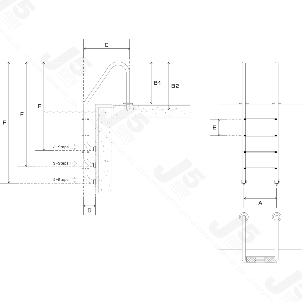 – ขั้นบันไดสแตนเลสเสริมยางป้องกันการลื่น มีทั้งขนาด 2, 3 และ 4 ขั้น