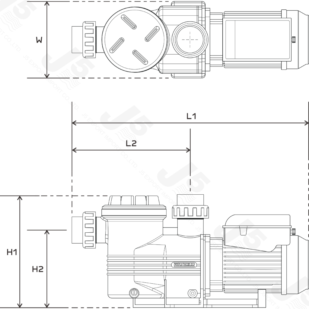 – มอเตอร์ประสิทธิภาพสูง IP44 พร้อมเพลามอเตอร์สแตนเลสเกรด 303 และพัดลมระบายความร้อนภายในมอเตอร์