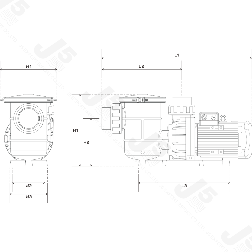 | รุ่น | ค่ากำลังมอเตอร์ | กำลังไฟฟ้าที่มอเตอร์ใช้ | แรงดันไฟฟ้าความถี่ 50Hz | ระบบแรงดันไฟฟ้า | ขนาดท่อ | น้ำหนัก | อัตราการไหล (m3/h) | |