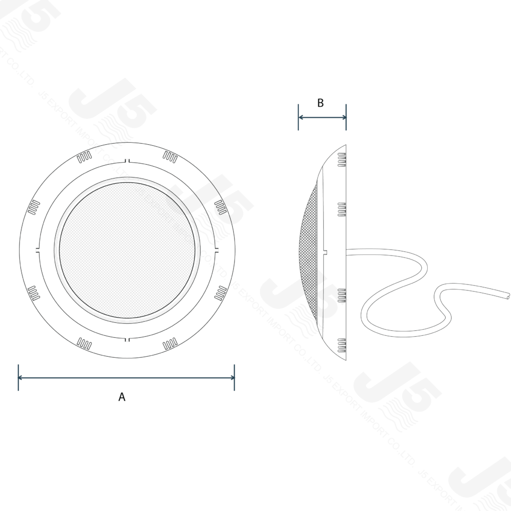 ไฟสำหรับสระว่ายน้ำ รุ่น 3640 ประเภทหลอดฮาโลเจน ด้วยขนาดกำลัง 100 วัตต์ ที่ให้ความสว่างสูง สามารถส่องแสงได้กว้างมาก มาพร้อมกับขอบหน้าไฟแบบพลาสติก ABS ที่มีความแข็งแรง ติดตั้งได้ง่าย และสามารถม้วนเก็บสายไฟด้านหลังได้