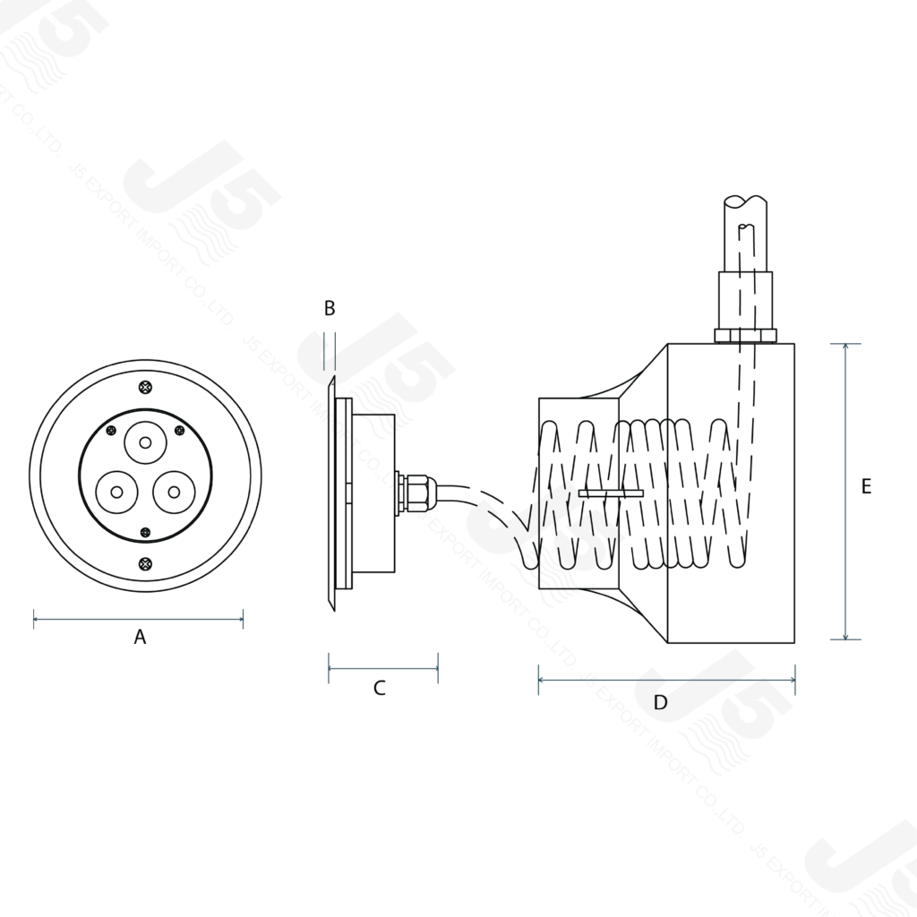 ไฟใต้น้ำ LED สำหรับสระว่ายน้ำ ขนาด 9 วัตต์ ที่มาพร้อมกับขอบสแตนเลส ที่มีความแข็งแรง ทนทาน และมีที่เก็บสายไฟสำหรับติดตั้งเข้าไปพร้อมกับโครงสร้างของสระว่ายน้ำ ด้วยลักษณะของหลอดไฟเป็นแบบ High Power ที่ให้ความสว่างสูงจึงมองเห็นแสงได้ทั่วทั้งสระว่ายน้ำ อีกทั้งยังมีให้เลือกทั้งแบบแสงสีเดียว หรือจะเป็นแบบที่เปลี่ยนสีได้ก็มีเช่นกัน