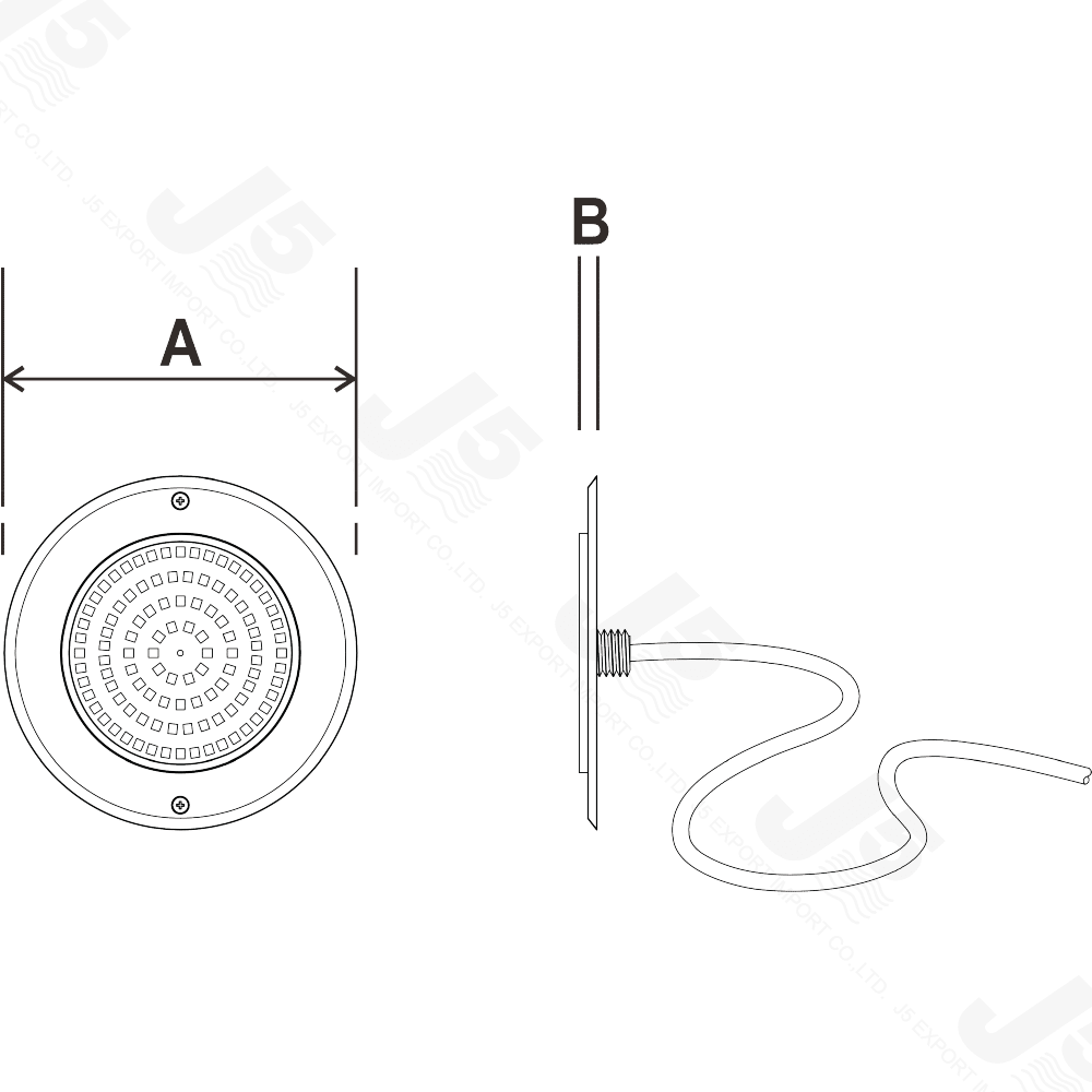 ไฟสระว่ายน้ำ LED รุ่นนี้เป็นแบบ Slim ที่มีความหนาเพียงเพียง 8 มิลลิเมตร พร้อมกรอบดวงโคมสีดำ ใช้การติดตั้งแบบแปะเข้ากับผนังสระได้ง่ายและสะดวก มีให้เลือกด้วยกัน 5 แสง ได้แก่ แสงสีขาว แสงวอร์ม แสงสีฟ้า แบบที่สามารถเปลี่ยนสีได้ และแบบสามารถเปลี่ยนสีได้พร้อมแสงวอร์ม