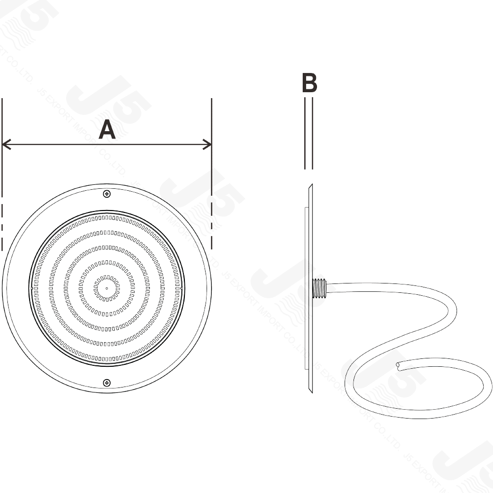 ไฟใต้น้ำ Underwater Light ชนิด LED สำหรับติดตั้งภายในสระว่ายน้ำโดยเฉพาะ SLB23018 ขนาด 18 Watt สินค้านำเข้าจากประเทศจีนภายใต้ แบรนด์ JESTA ไฟสระว่ายน้ำ LED รุ่นนี้เป็นแบบ Slim ที่มีความหนาเพียง 8 มิลลิเมตร พร้อมกรอบดวงโคมสีดำ ใช้การติดตั้งแบบแปะเข้ากับผนังสระได้ง่ายและสะดวก มีให้เลือกด้วยกัน 5 แบบ ได้แก่ แสงสีขาว แสงวอร์ม แสงสีฟ้า แบบที่สามารถเปลี่ยนสีได้ และแบบสามารถเปลี่ยนสีได้พร้อมแสงวอร์ม