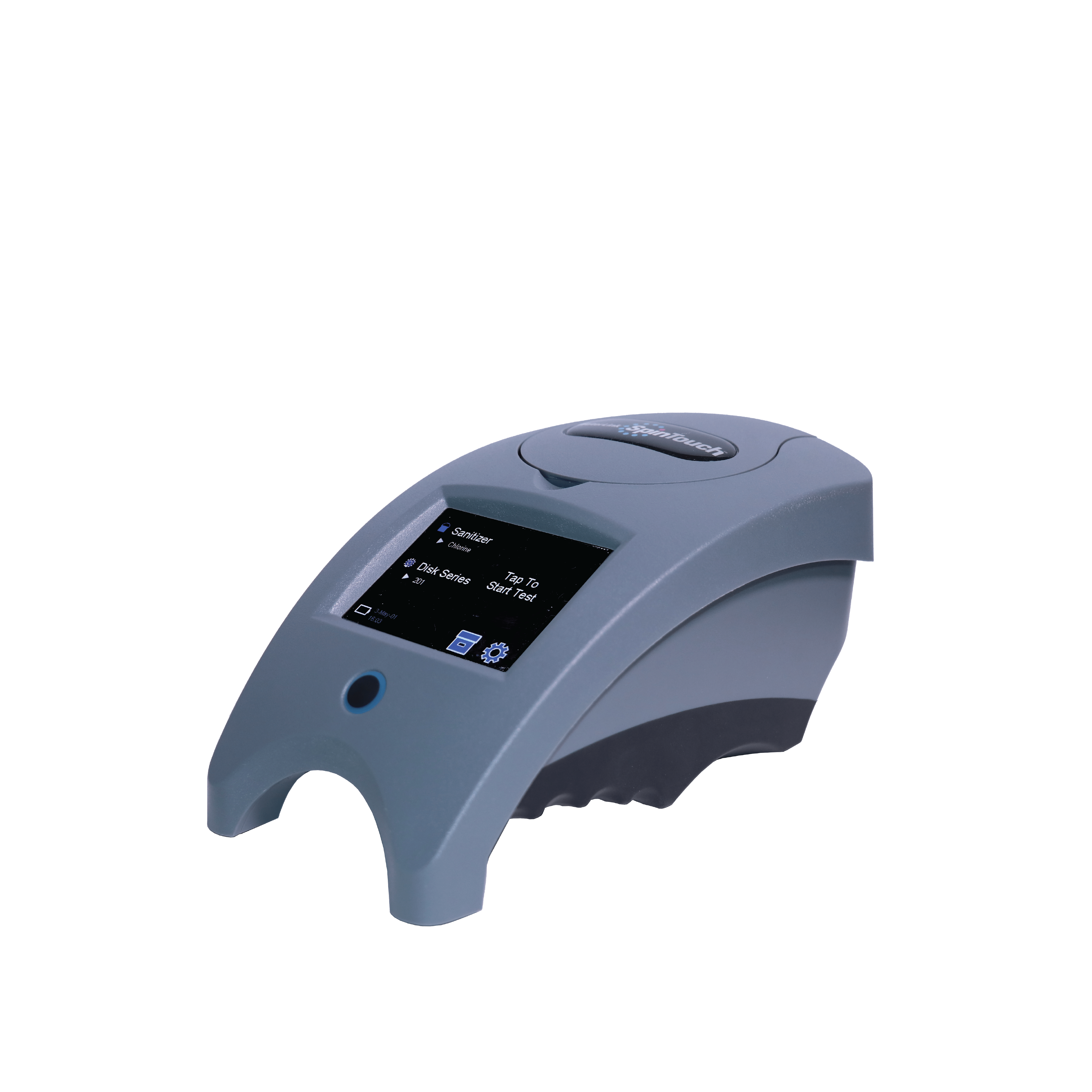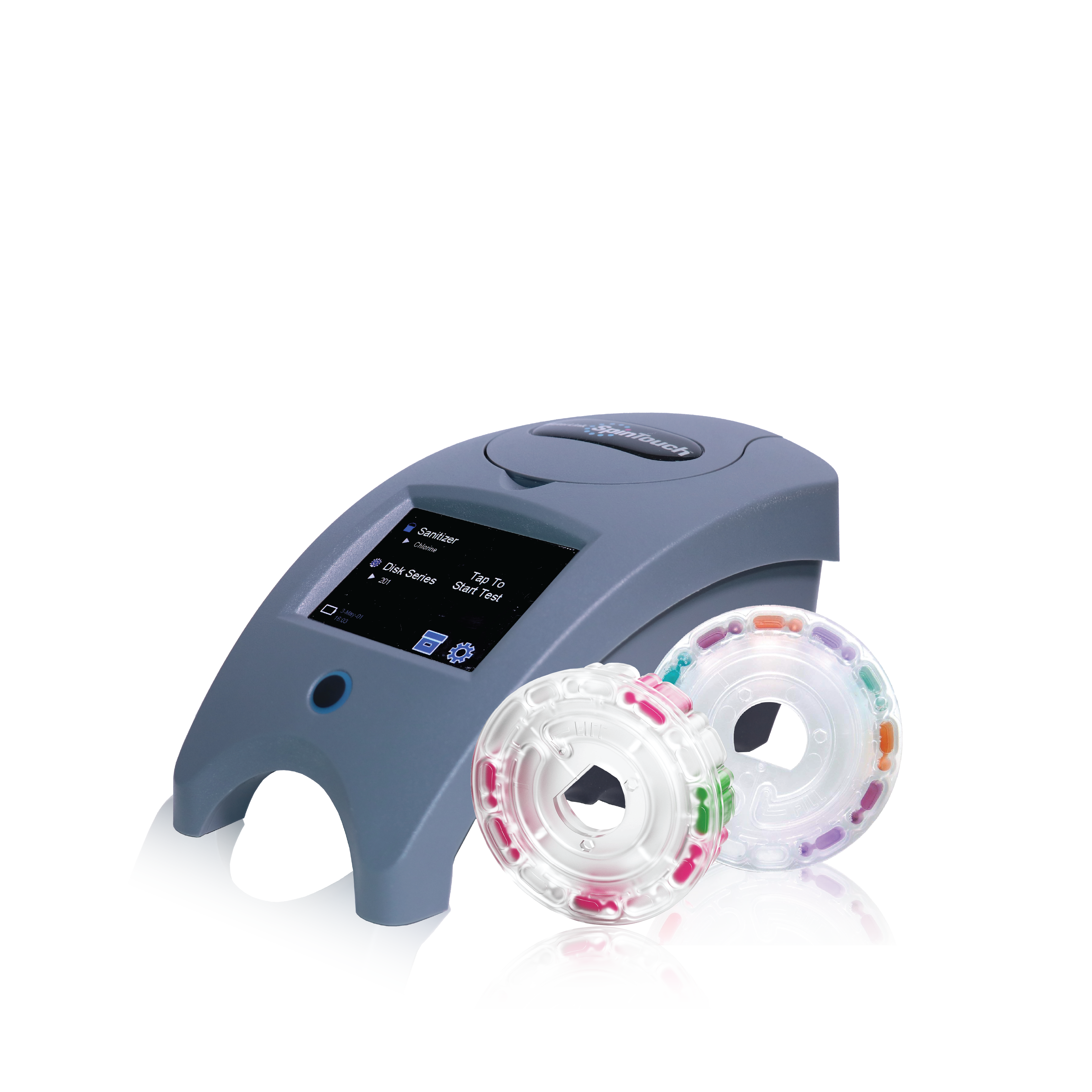 อุปกรณ์ WaterLink SpinTouch สำหรับช่วยในการวิเคราะห์คุณสมบัติของน้ำโดยอัตโนมัติรุ่นล่าสุด ที่ผ่านการออกแบบด้วยนวัตกรรมเทคโนโลยีที่ทันสมัย สามารถทดสอบคุณสมบัติของน้ำในสระว่ายน้ำของคุณได้ทุกที่ โดยที่แผ่นดิสก์รีเอเจนต์แต่ละแผ่นนั้นจะมีชุดทดสอบปฏิกิริยาทางเคมีที่มีความแม่นยำ