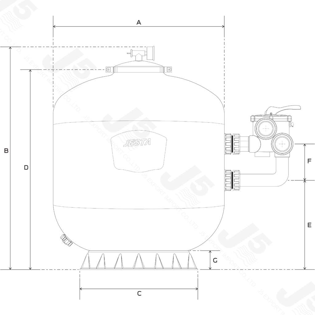 เครื่องกรองทราย รุ่น WL-BCG Series แบรนด์ Jesta มีประสิทธิภาพในการกรองน้ำที่สูงผ่านกระบวนการผลิตที่มีคุณภาพ ด้วยวิธีการขึ้นรูปจากวัสดุเทอร์โมพลาสติกทีมีความแม่นยำ เสริมโดยการพันด้วยไฟเบอร์กลาส ทำให้ได้คุณสมบัติที่มีความแข็งแรง ยืดหยุ่นสูง และสามารถทนทานต่อการกัดกร่อนได้เป็นอย่างดี