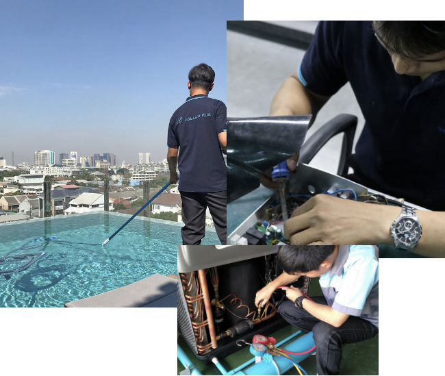 การดูแลสระว่ายน้ำอย่างต่อเนื่องและถูกต้องเป็นสิ่งที่จำเป็นอย่างยิ่ง เมื่อเกิดปัญหา เรามีทีมช่างที่เชี่ยวชาญ ที่พร้อมจะตรวจสอบอุปกรณ์หรือ สำรวจหน้างาน เพื่อวิเคราะห์ข้อบกพร่องและให้คำปรึกษาอย่างถูกจุดและ ซื่อตรง